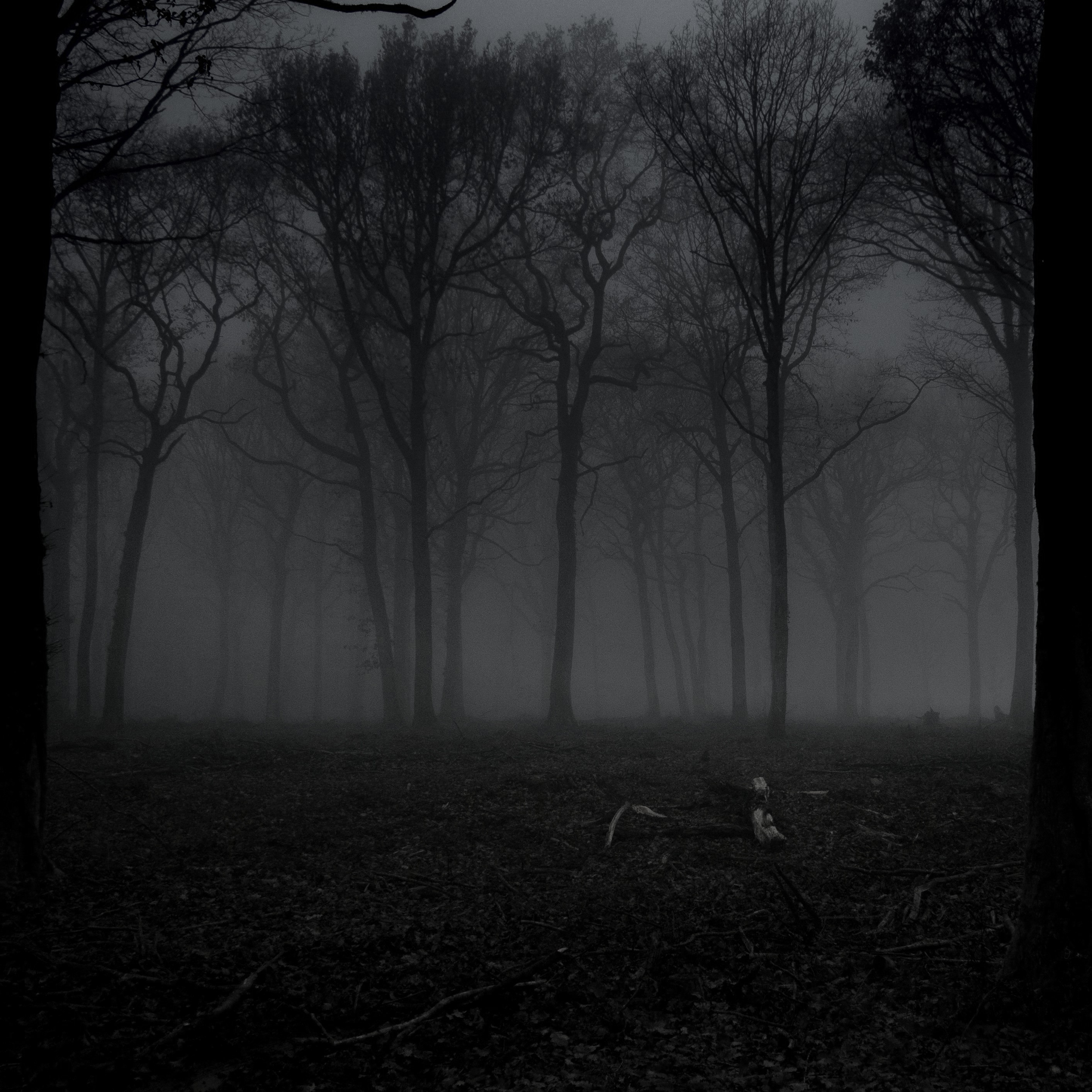 One boy alone in the woods.